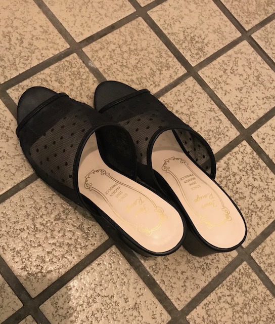さて、新しいサンダルは 涼しげなチュール地で出来ていますが、それが気に入った というより、この形のサンダルが欲しかったのです。ただ今、足の指の間に出来た タコの治療中。指を締めつける靴は なるべく履かないように指導されてるんです。